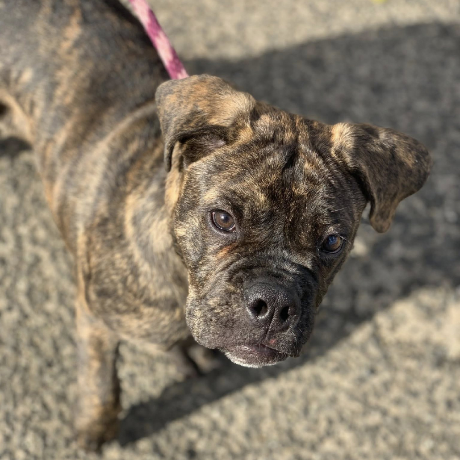 Képzeld el: cukorborsó fejecske, hatalmas tappancsok és egy örök szeretetre éhes, vidám kölyök szív. Rozi 2025 júniusában született, most kb. 15–18 kg, feltételezhetően boxer keverék. Kombinált és veszettség oltással ellátott, chipes, egészséges kislány.