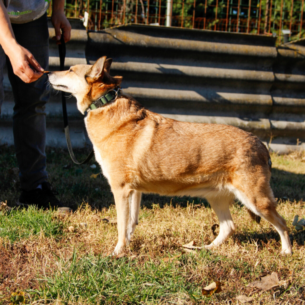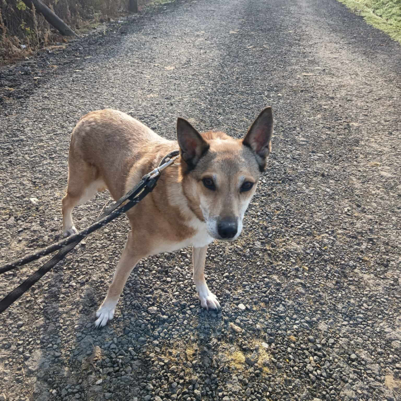 Poppy 2025.10.21-én érkezett hozzánk Karcagról, 8 évet élt az ottani menhelyen…sosem volt érdeklődje ☹ Poppy nehezen nyitott felénk, nagyon meg volt rémülve mikor megérkeztünk vele és elfoglalta helyét. Kellett neki pár nap, hogy megnyugodjon és kézből elvegye a finom nasit. Nem ismerte a pórázon való közlekedést, mindentől és mindenkitől megrettent, majd megismertettük a kifutóval, amit már nagyon élvez…most már rohangál, illetve kéri a simit, szeretgetést. Elkezdtünk vele sétálni is, az elején csak rövid útra indultunk vele, mert az ismeretlen zajoktól megijedt, de napról napra ügyesebb.