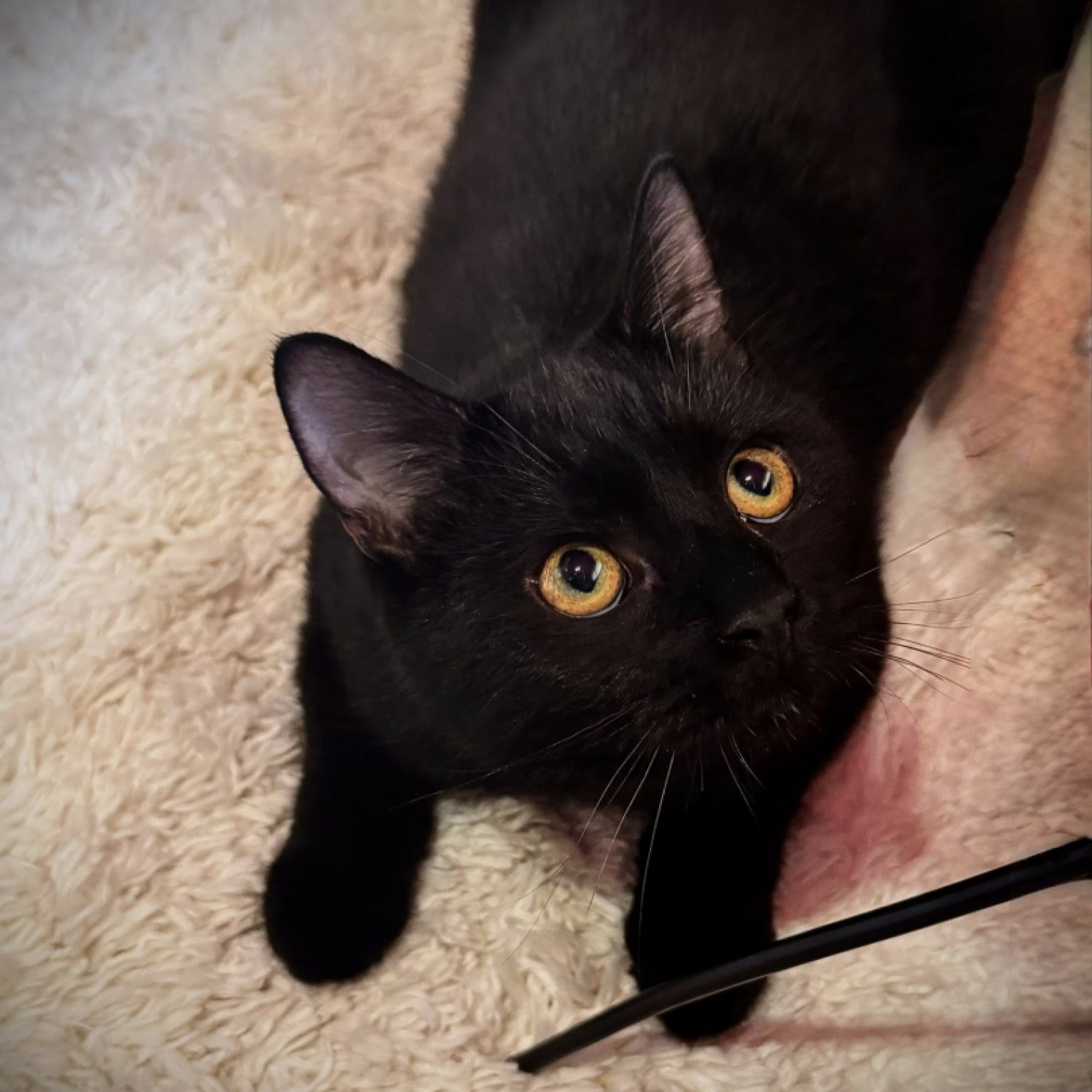 Igazán aktív és játékos, állatokkal nagyon szociális cica, kutya, Nyuszi mindenkinek keresi a társaságát, szeret velük játszani vagy csak éppen összebújni. Most is több cicus társaságában várakozik a gazdira.