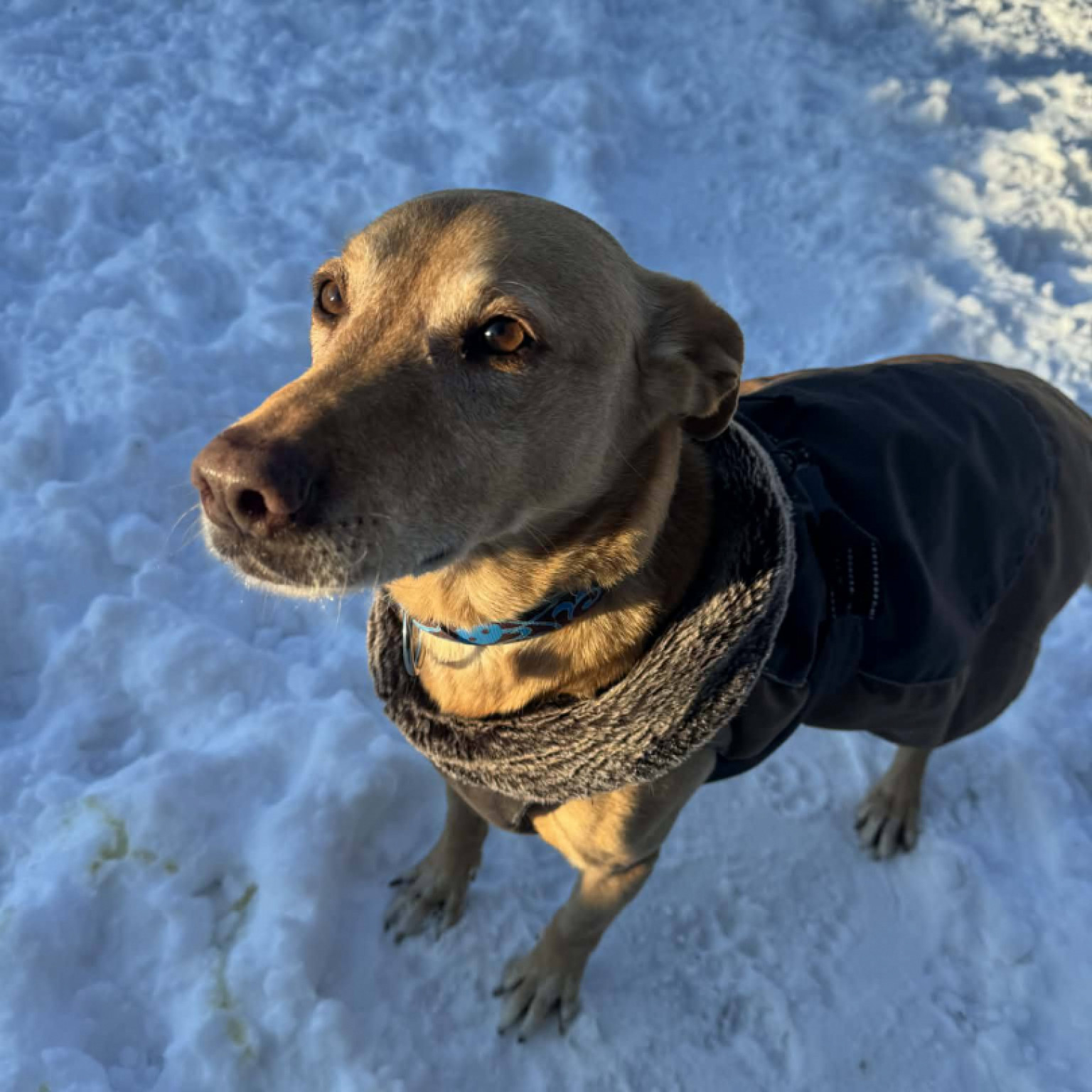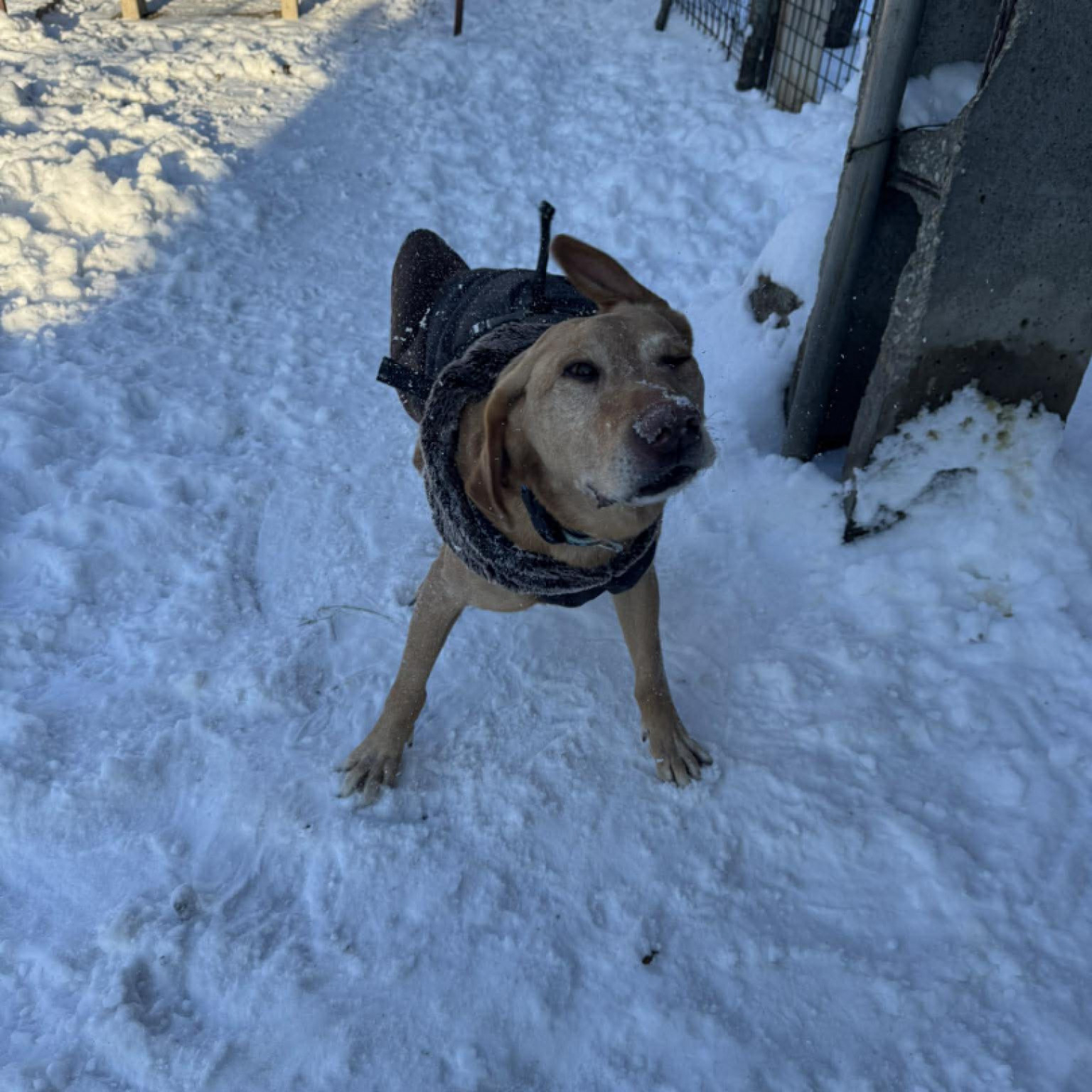 Mangó, aki Gombóc néven került hozzánk 2020.06.18-án Miskolcról és 1 hónapon belül gazdisodott is. Előéletéről annyit tudunk, hogy 2020 év elején társával együtt adták le az ebtelepre. Mangóka 2020. júliusban el is költözött és 5 évet élt családban, sok szeretet és foglalkozás vette körül, majd a gazdi élethelyzete akaratán kívül úgy változott, hogy munkája miatt kevesebb időt tud vele lenni, mint szerette volna, így napi 14 órát egyedül volt. Ráadásul az eddig folyamatosan vele otthon lévő családtag sajnálatos elvesztése is megviselte érzékeny kutyalelkét. Valószínűleg a magányosság érzése kerítette hatalmába és szökni kezdett míg a gazdi távol volt.