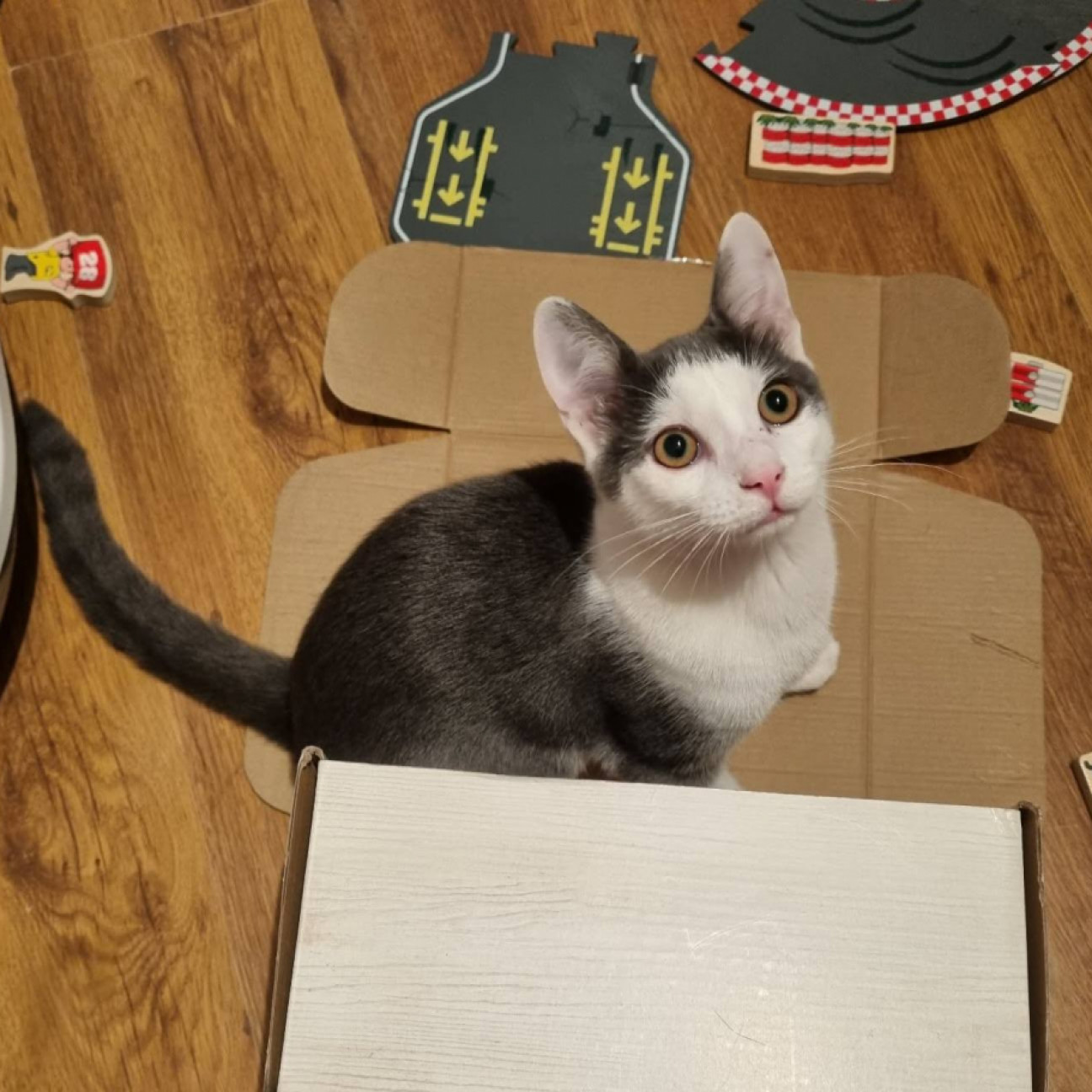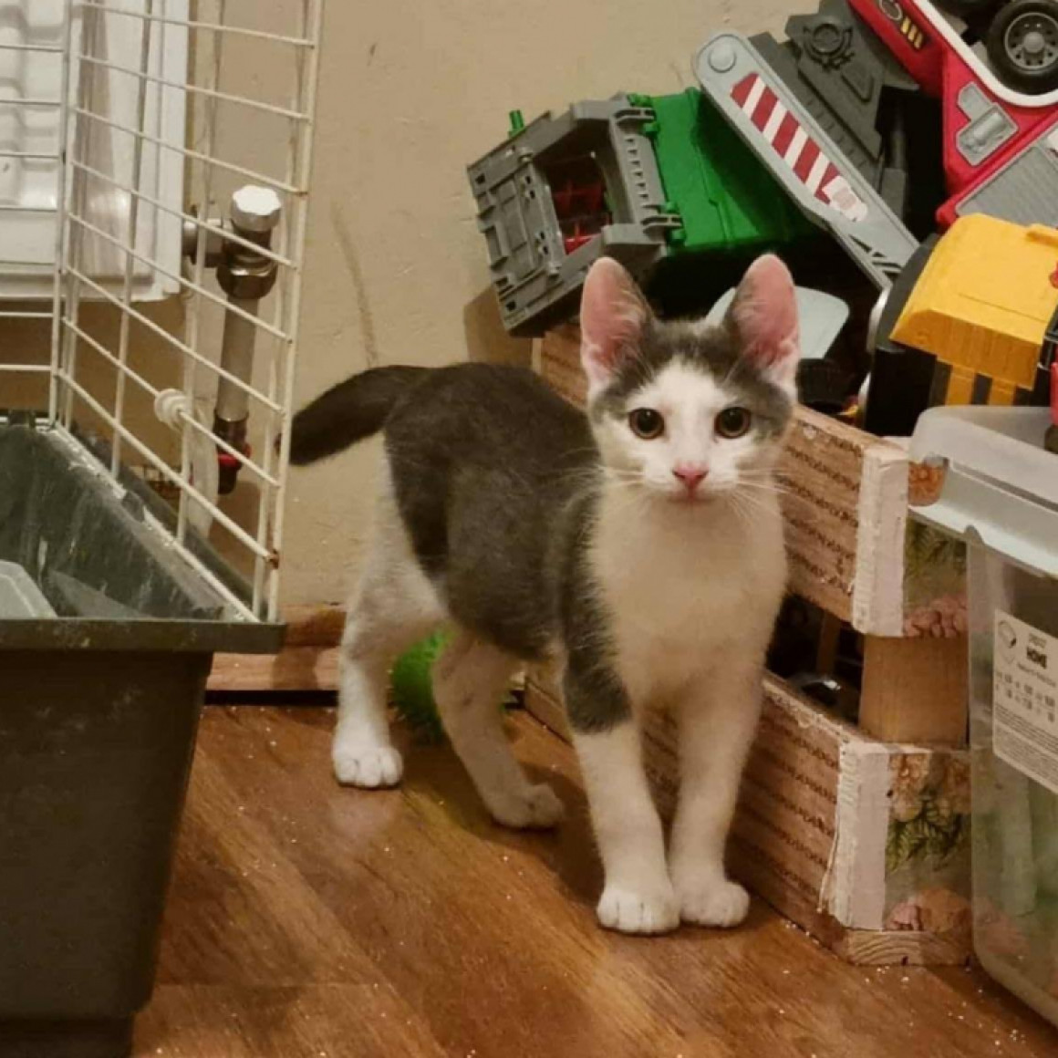 Sapi szürke, fehér bundás kiskandúr, aki a testvérével együtt 2025 augusztus első hetében került a gondozásunkba kb. 2 hetesen, mama nélkül, nagyon rossz állapotba. A két apróság nem kis küzdelem árán felnevelődött és gazdikereső státuszt kaptak. Sapi kézzel nevelt, kedves, játékos, életkorának megfelelően aktív, de kicsit félénkebb, mint a nővére, Szusi. Ideiglenes befogadójánál megszokta a gyerekeket, más cicákat és a kutyák jelenlétét is. Oltást, chipet kapott, parazitáktól mentes, FIV/FELV tesztje negatív lett és hamarosan átesik az ivartalanításon is.