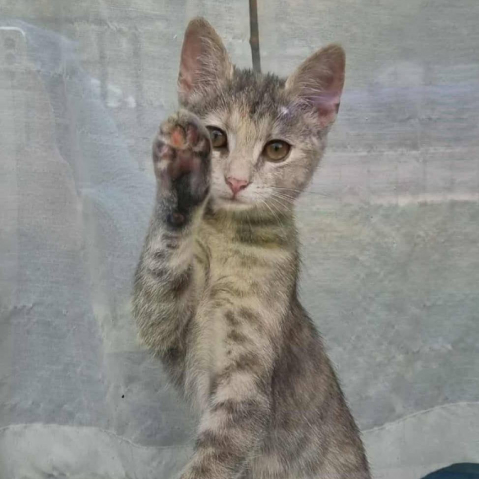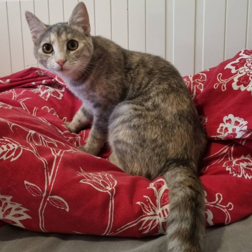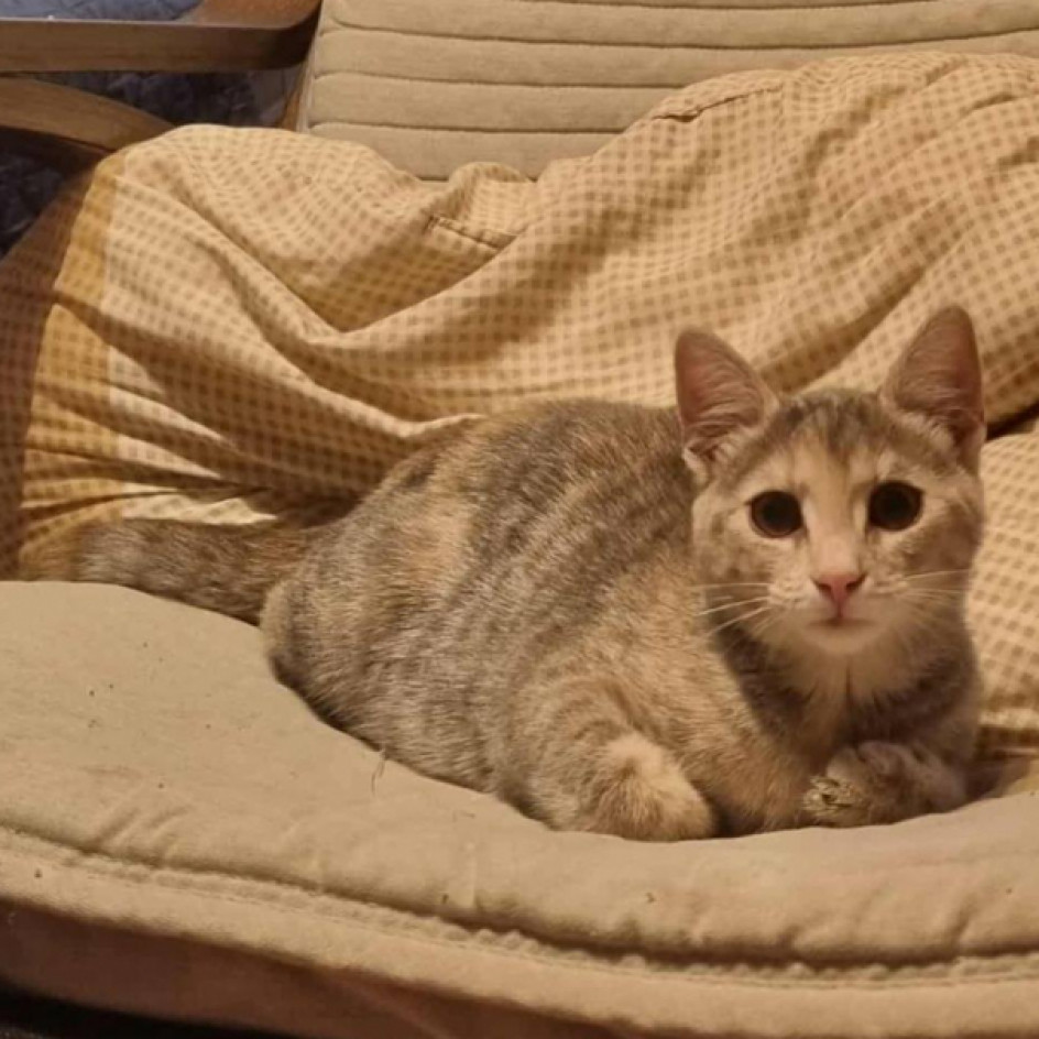 Szusi a testvérével együtt 2025 augusztus első hetében került a gondozásunkba kb. 2 hetesen, mama nélkül, nagyon rossz állapotba. Eredetileg négyen voltak, két testvérüket sajnos elveszítettük. A két apróság nem kis küzdelem árán felnevelődött és gazdikereső státuszt kaptak. Szusi kézzel nevelt, kedves, játékos, életkorának megfelelően aktív. Különleges, bézs-szürke teknőc tarka bundás kislány, aki ideiglenes befogadójánál megszokta a gyerekeket, más cicákat és a kutyák jelenlétét is. Oltást, chipet kapott, parazitáktól mentes, FIV/FELV tesztje negatív lett és már átesett az ivartalanításon is.