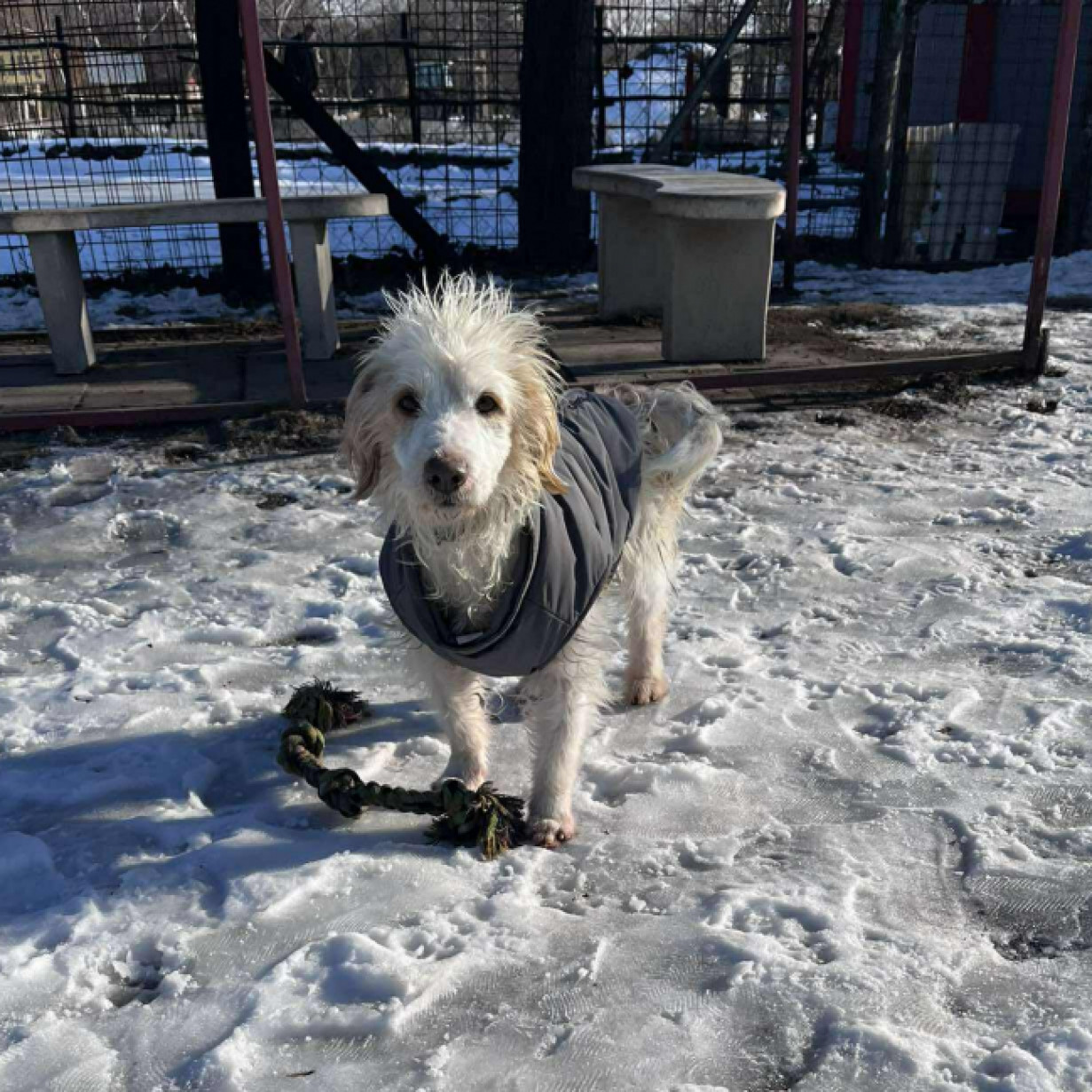 Árpi 2026.01.06-án érkezett hozzánk Egyekről, előéletéről nem tudunk semmit. Első találkozás során a fogsorát villantva mosolygott ránk …de ez is már a múlt, mert nagy örömmel vár minket reggel és a kifutón is egyre ügyesebb, plusz már kéri a simit, ami nála nagy lépés. Ráadásul nagyon törekszik a kenneltisztaságra Egyelőre még nem sétál, de hamarosan elindulunk vele az első sétájára is Szóval szuperül halad és ügyes fiúcska Ismerkedése még folyamatban!